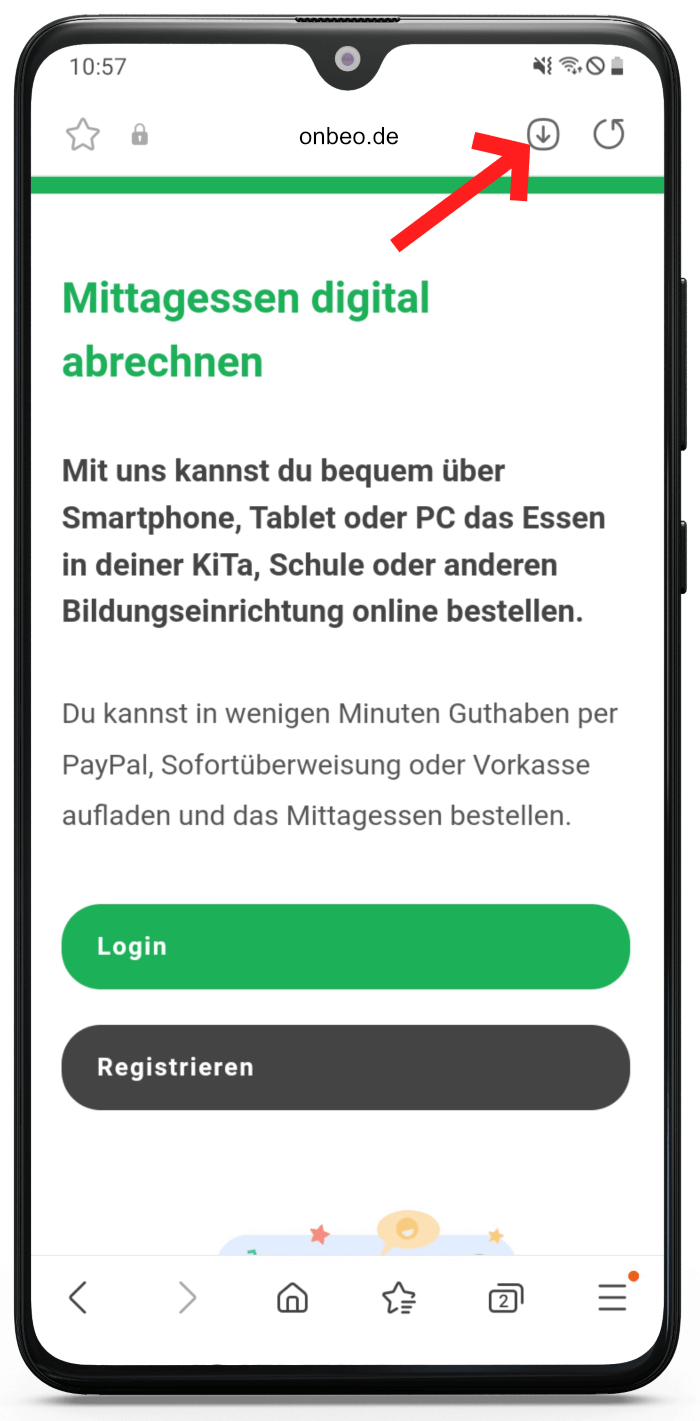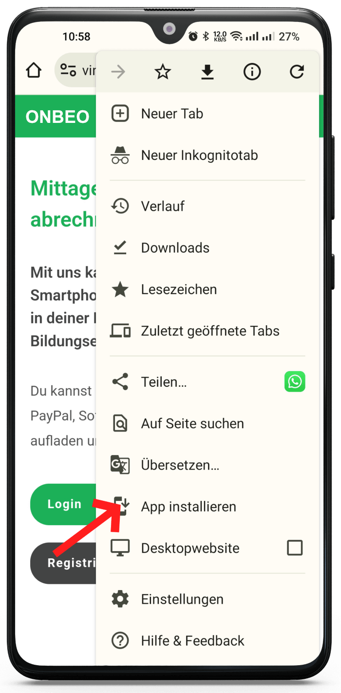 Onmensa ist als WebApp für Ihr Android Gerät verfügbar. Befolgen Sie dazu folgende Schritte: