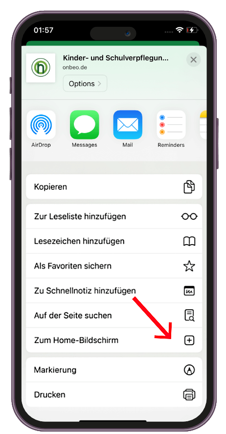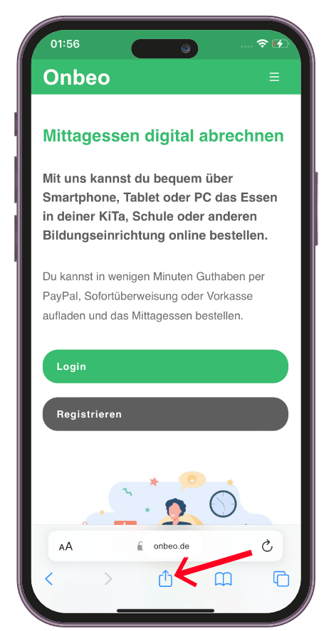 Onmensa ist als WebApp für Ihr iPhone verfügbar. Befolgen Sie dazu folgende Schritte: